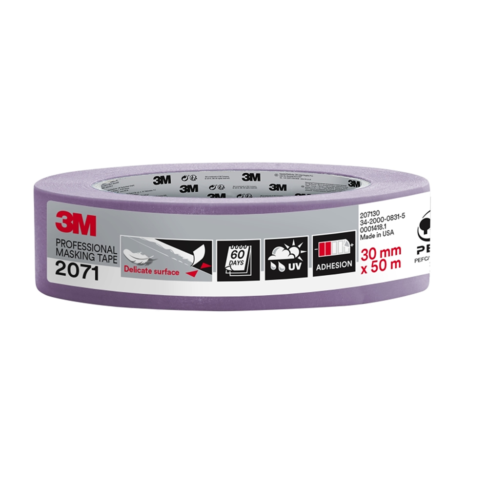 La cinta 3M? 2071 combina durabilidad, facilidad de uso y un acabado limpio, garantizando la protección de superficies sensibles durante el proceso de pintura.