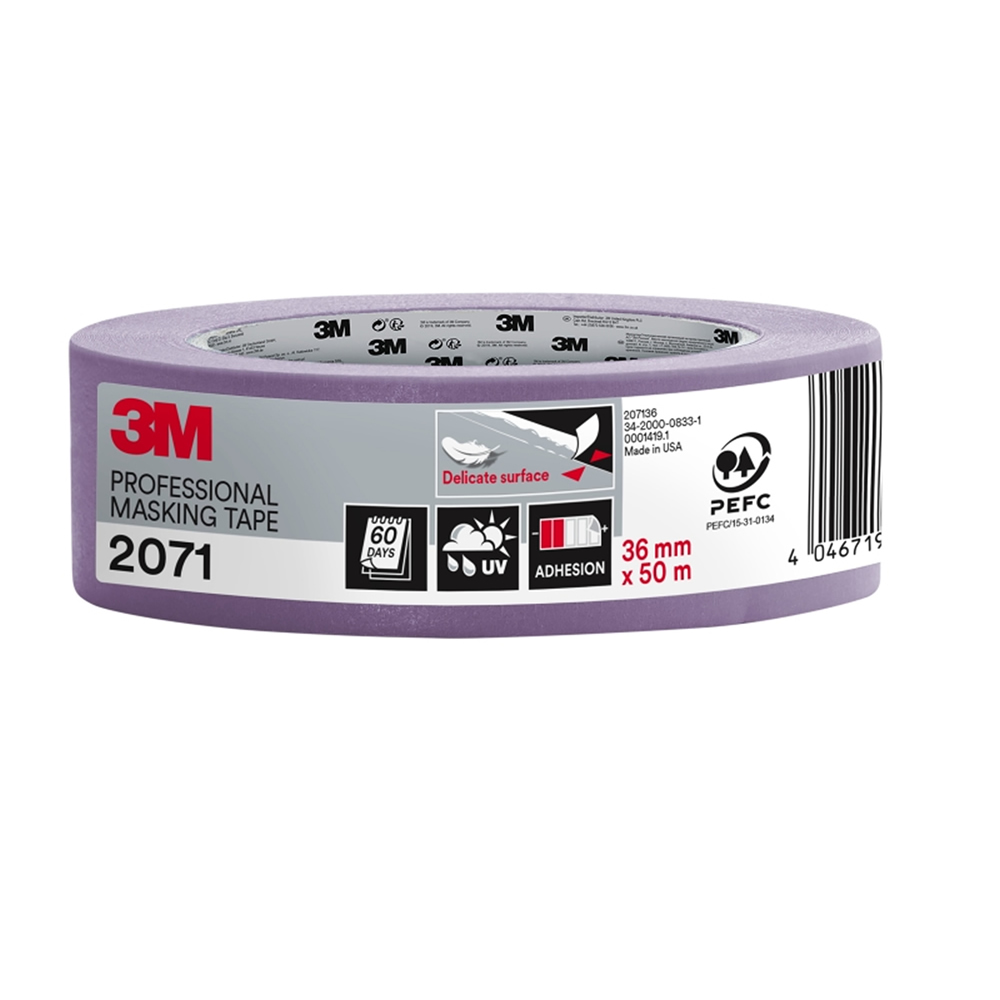 La cinta de enmascarar profesional 3M? 2071 es una solución de alta calidad diseñada para ofrecer resultados precisos y limpios en proyectos de pintura y protección de superficies delicadas. Su formulación avanzada permite una adhesión segura sin dañar las superficies, facilitando un trabajo eficiente y profesional. Ideal para aplicaciones en paredes pintadas y recién pintadas (con un mínimo de 24 horas de secado), suelos de madera, papel pintado con revestimiento de vinilo, chapas y armarios, garantizando un acabado impecable y sin residuos.