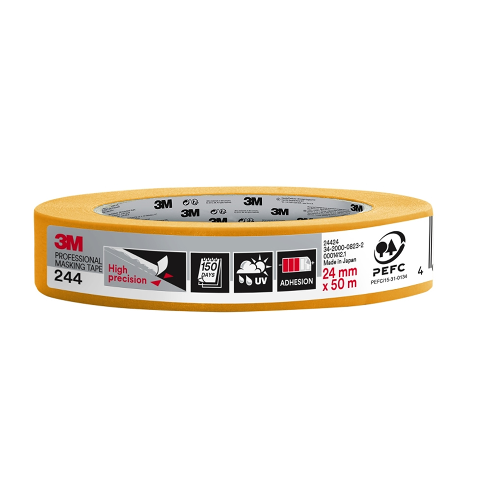 La cinta de enmascarar profesional 3M? 244 es la opción ideal para lograr líneas de pintura impecables en una variedad de superficies. Diseñada para ofrecer resultados de alta precisión, esta cinta es perfecta para trabajos que requieren un acabado limpio y profesional en superficies lisas y ligeramente texturizadas.