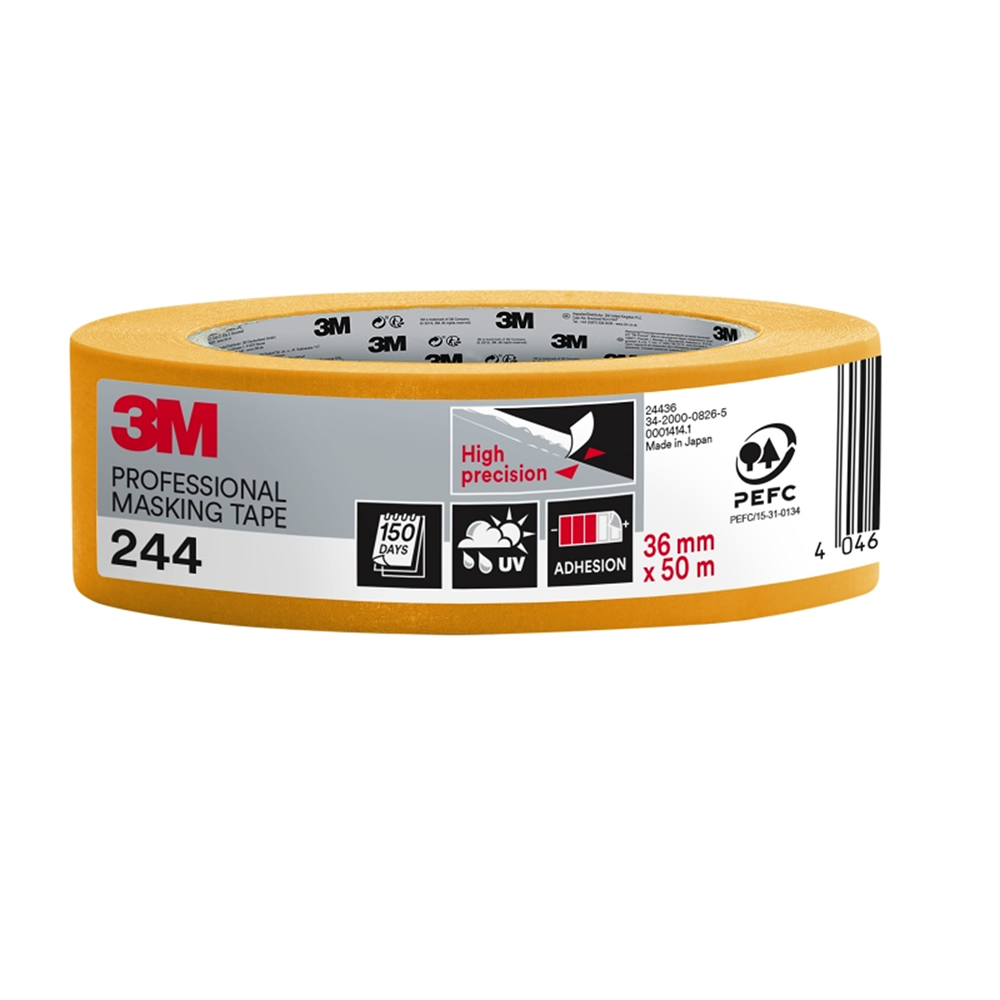 La cinta de enmascarar profesional 3M? 244 es la opción ideal para lograr líneas de pintura excepcionalmente precisas en una variedad de superficies, incluyendo cristal, plástico, barnices, esmaltes, madera y metal. Diseñada para ofrecer un rendimiento superior, esta cinta garantiza resultados limpios y profesionales en cada proyecto.