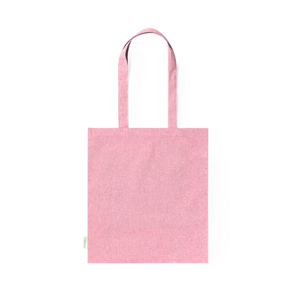 Bolsa fabricada en material100% algodón reciclado de 140g/m2. Certificación GRS (Global Recycled Standard / Estándar de Reciclaje Global), que garantiza el origen reciclado del material usado para fabricar el producto. De acabaco cosido, con asas largas reforzadas de 70 cm y disponible en variada gama de colores. Resistencia hasta 8kg, incluida etiqueta con distintivo de algodón reciclado. Medidas: 38 x 42 cm. Peso: 65 grs. Codigo de impresión: F(6),M,N(8),O,P.
