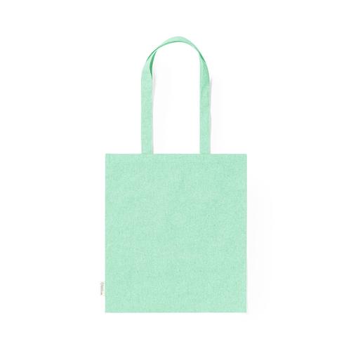 Bolsa fabricada en material100% algodón reciclado de 140g/m2. Certificación GRS (Global Recycled Standard / Estándar de Reciclaje Global), que garantiza el origen reciclado del material usado para fabricar el producto. De acabaco cosido, con asas largas reforzadas de 70 cm y disponible en variada gama de colores. Resistencia hasta 8kg, incluida etiqueta con distintivo de algodón reciclado. Medidas: 38 x 42 cm. Peso: 65 grs. Codigo de impresión: F(6),M,N(8),O,P.