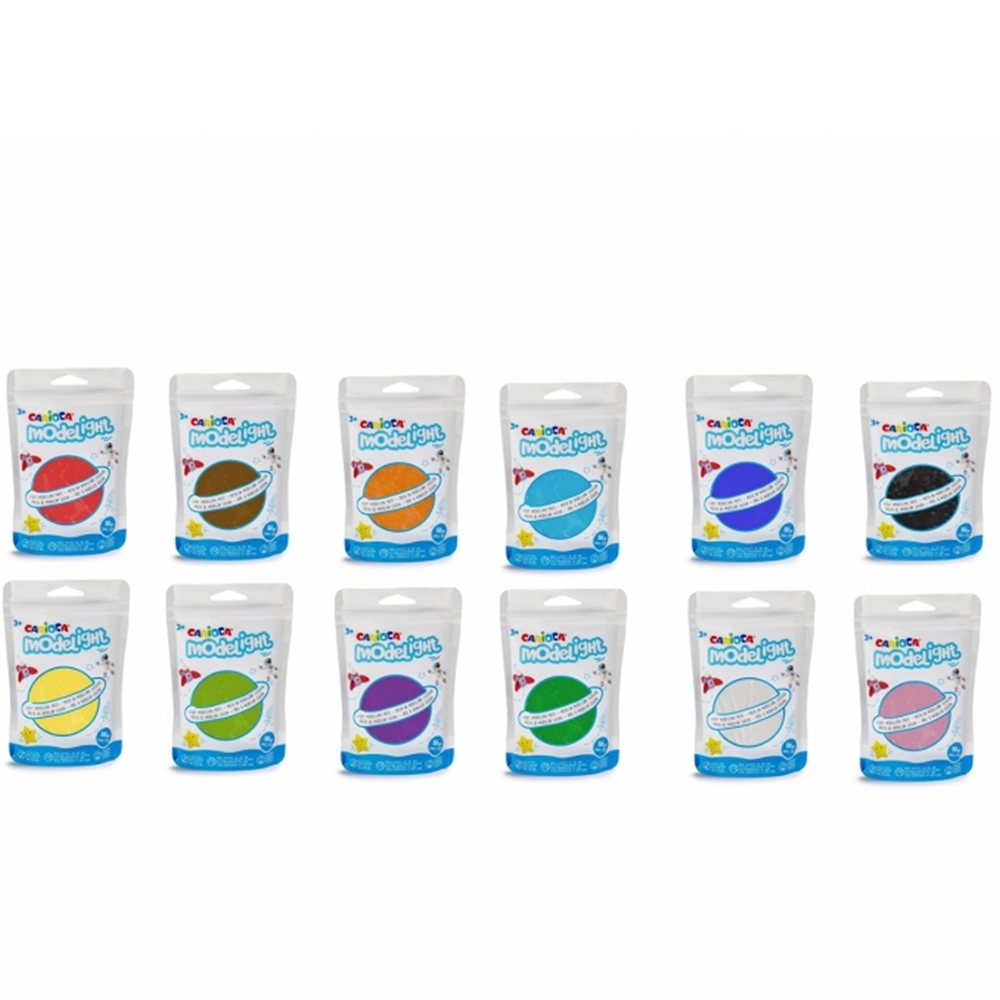 Carioca Modelight Pack de 12 Pastas de Moldear Super Ligera - Elastica y Maleable - Se Seca al Aire - No Ensucia las Manos - Reutilizable con Agua