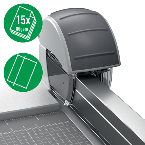 Cuchilla de corte Office, corte recto, 2 unidades. Cartucho de cuchilla de corte recto de repuesto de alta calidad para las cizallas Leitz Precision OffBreeze (códigos de producto 90270000 y 90280000) que recortará sin esfuerzo hasta 15 hojas de papel A4 (80grs) con velocidad y precisión. La cuchilla giratoria circular está encerrada en un cartucho de plástico, lo que la hace segura para las tareas diarias de recorte de papel o para las manualidades en casa, en la oficina o en el aula. Se sustituye de forma rápida y sencilla, simplemente dejando caer el cartucho en el cabezal de la cizalla, de diseño ergonómico y de fácil agarre. También hay disponibles un cartucho de corte ondulado y otro de cuchilla perforadora. Con esta cuchilla circular de acero de repuesto, tendrás la tranquilidad de que tu cizalla de papel de alta calidad te proporcionará un recorte preciso durante muchos años.