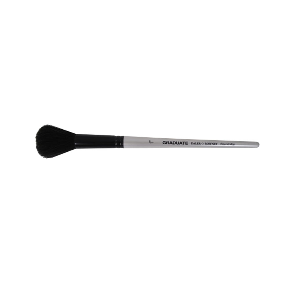 Graduate pelo de cabra Natural Negro Mop nº1 de mango corto, perfecto para pintar con acuarelas y gouache. Este pincel se recomienda para suavizar y difuminar porque muestra un mínimo de pinceladas. La gama Graduate ofrece pinceles multitécnica para todas las técnicas de bellas artes.