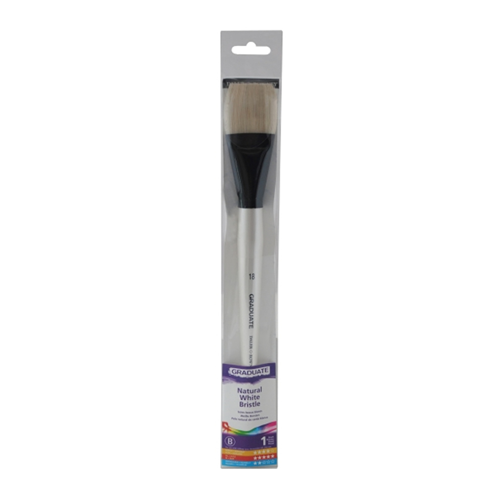 Graduate Natural Plano Corto de mango largo nº18, perfecto para pintar con óleos. Con su punta de pincel brillante, esta brocha de pintura versátil puede aplicar trazos amplios o una línea fina cuando se usa en el borde del cincel, su longitud más corta permite un mayor control. La gama Graduate ofrece pinceles multitécnica para todas las técnicas de bellas artes.
