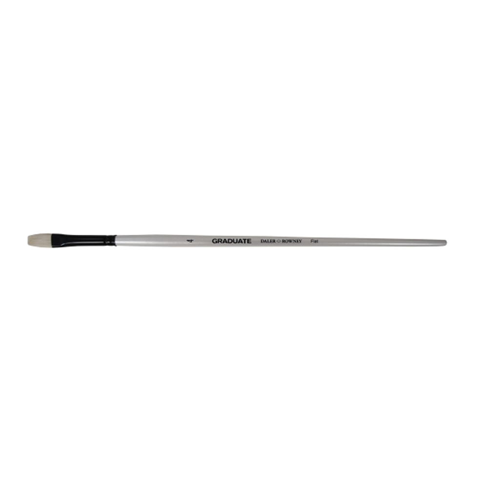 Graduate Natural Plano de mango largo nº4, perfecto para pintar óleos. Con su forma de cabeza plana, este pincel de pintura versátil puede aplicar trazos amplios o una línea fina cuando se usa en el borde del cincel. La gama Graduate ofrece pinceles multitécnica para todas las técnicas de bellas artes.