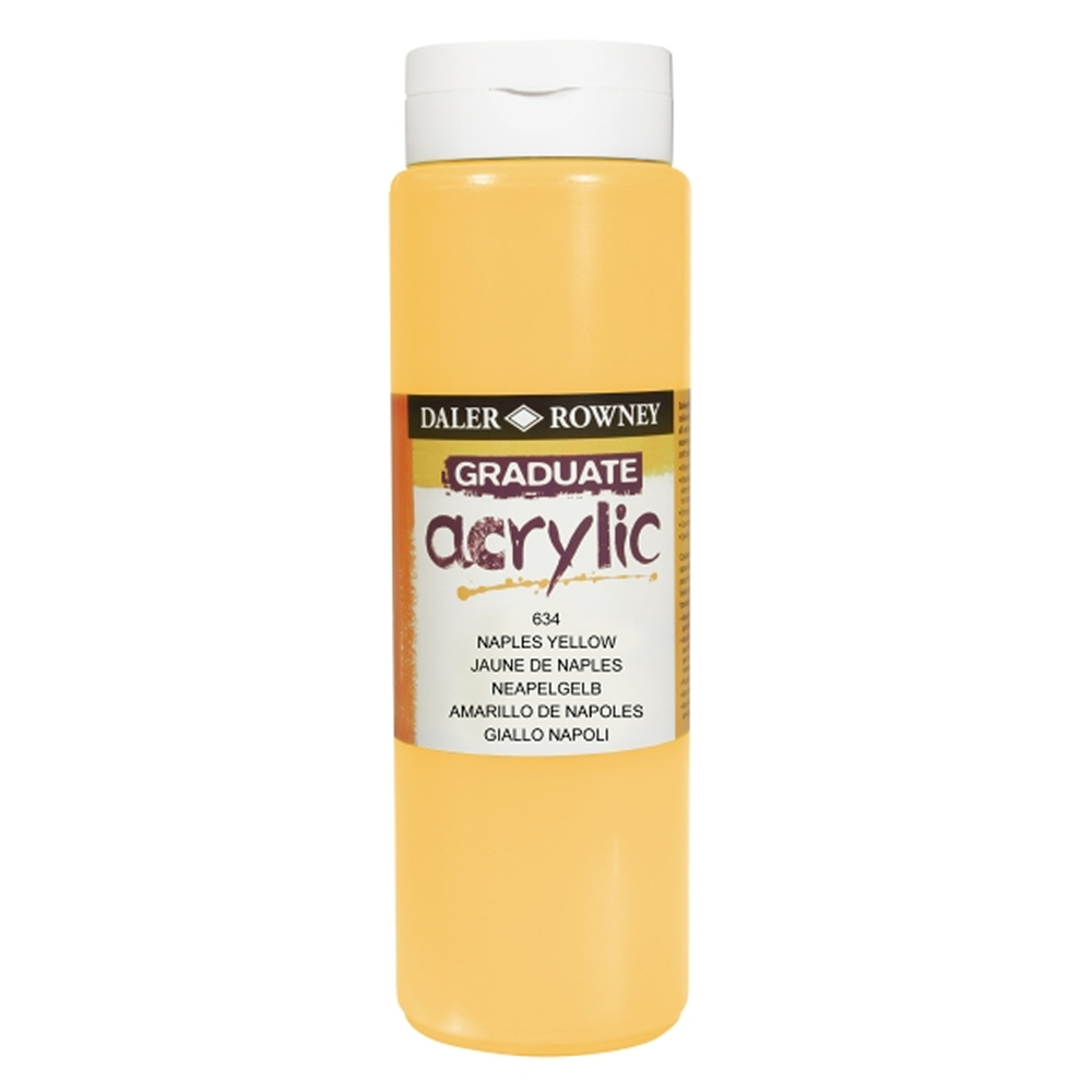 Daler Rowney Graduate Pintura Acrilica - Botella de Plastico - 500ml - Color Amarillo de Napoles.