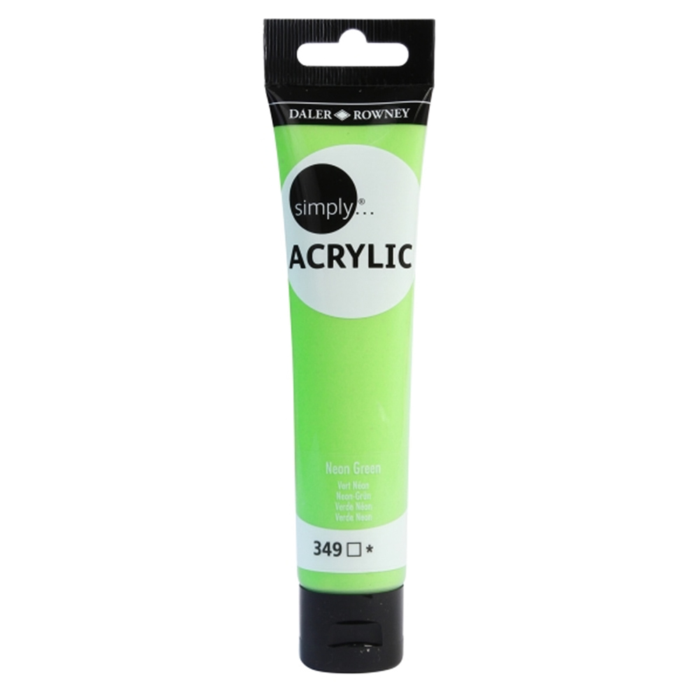 Tubo 75ml Daler-Rowney Simply Verde Neón. Los acrílicos Simply son colores de base agua que se pueden utilizar en todas las superficies artísticas convencionales, como papel, cartón y lienzo. Estos colores de cuerpo suave se pueden usar directamente del tubo, diluidos con agua o mezclados para crear una variedad infinita de colores vibrantes.