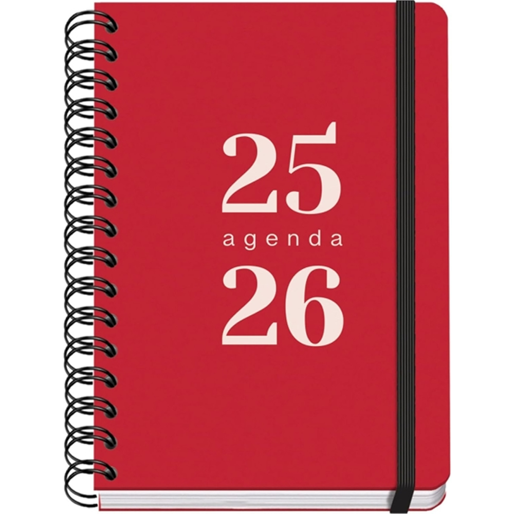 Dohe Grammar Agenda Escolar 25/26 Espiral A5 - Dia Pagina - Papel 80g/m2 - Cubierta de Polipropileno - Cierre de Goma Elastica - Color Rojo.