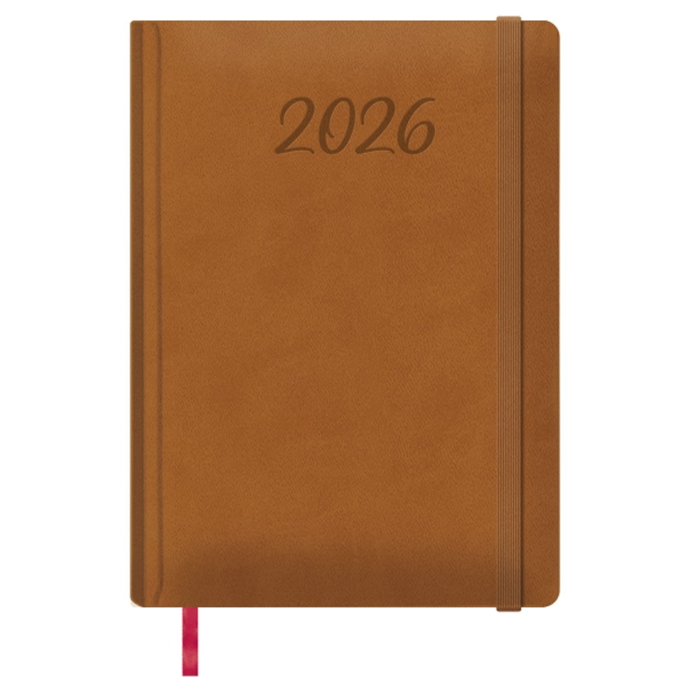 Dohe Manaos agenda anual. Cubierta realizada en polipiel con cartón contracolado, almohadillada y con costura perimetral. Estampación del año en seco. Interior con sábado y domingo en la misma página, impresa a dos colores en papel ahuesado de 80 grs., con 336 páginas.