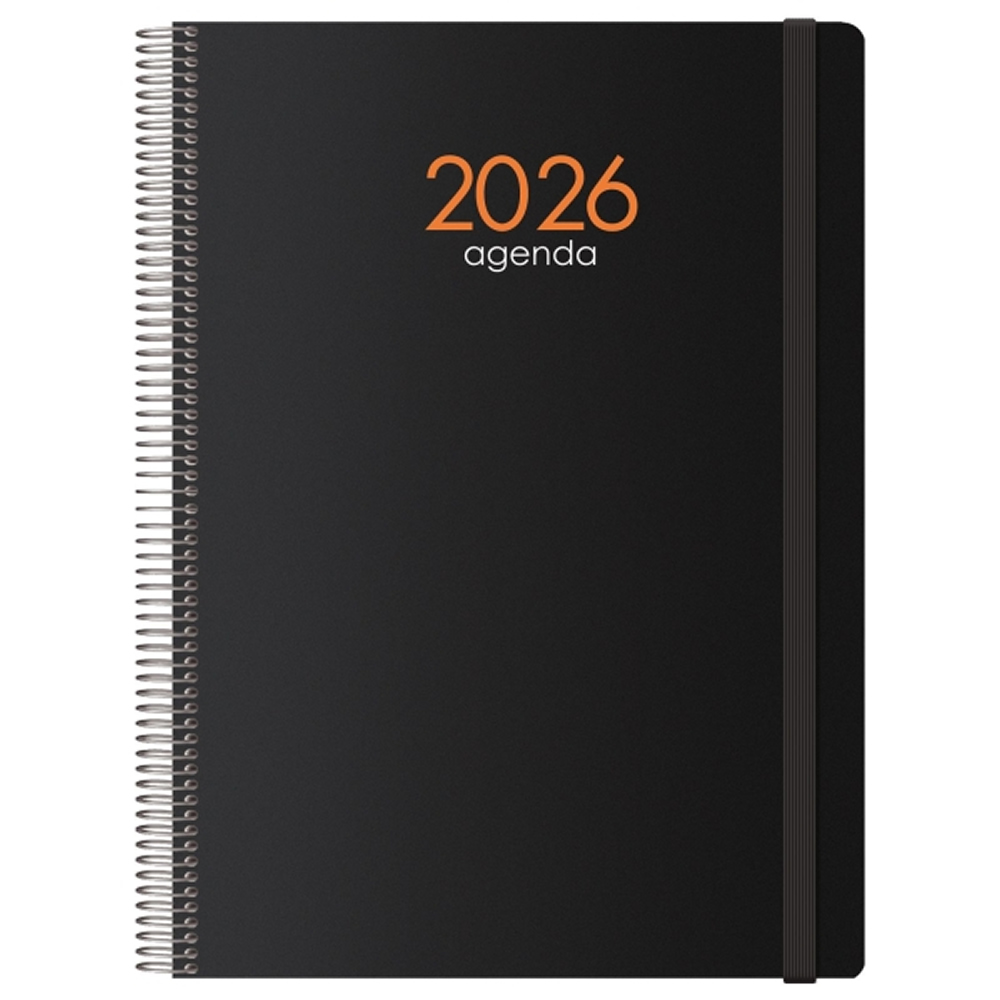 Dohe Syncro Agenda Anual - Dia Pagina - Cubierta de Plastico - Sabado y Domingo misma Pagina - Cierre con Goma Elastica - Tamaño 21x29cm - Color Negro.