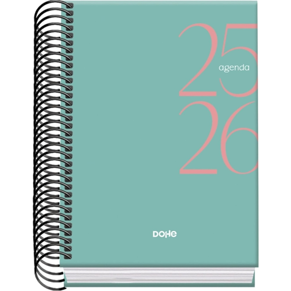 Dohe System Agenda Escolar 25/26 Espiral A6 - Dia Pagina - Papel 70g/m2 - Cubierta de Carton Plastificado - Color Verde.