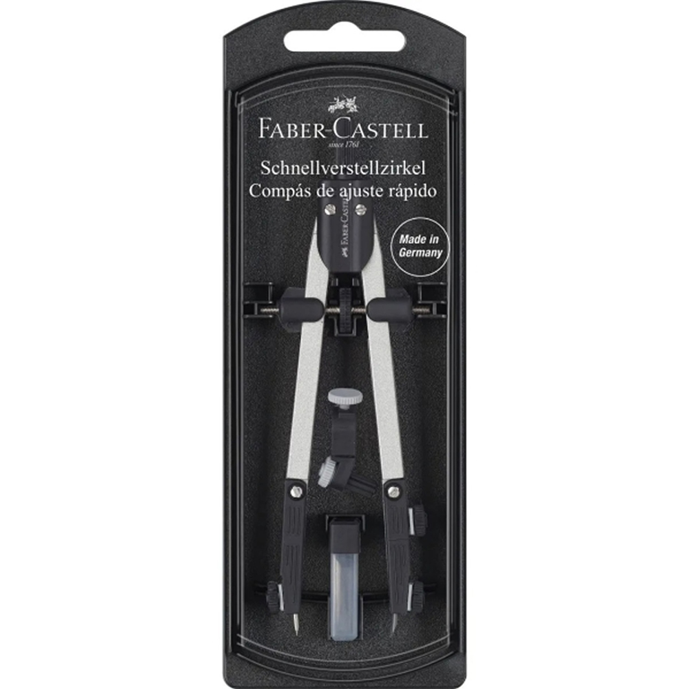 Calidad y funcionalidad combinadas con excepcional diseño - este es el lema de la compañía Faber-Castell. Incluso respecto a los compases, el líder de mercado debe estar al tanto de las últimas tendencias. Al margen de las modas de diseño, Faber-Castell ofrece una resistente tecnología. Ruedas de sujeción robustas, tornillos centrales firmes, brazos fáciles de ajustar, agujas antideslizantes y abrazaderas para minas y líneas exactas son rasgos esenciales de los compases Faber-Castell.