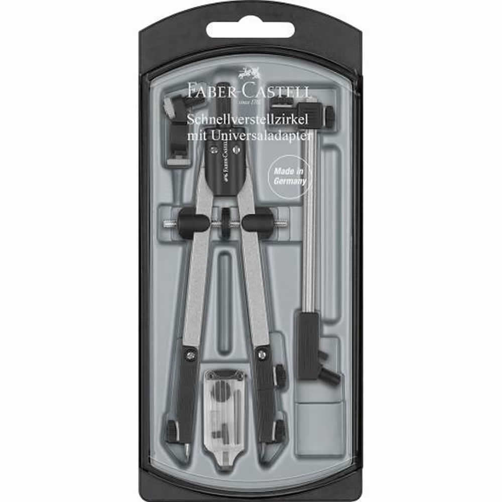 Faber-Castell Compas de Ajuste Rapido con Alargadera - Articulaciones en ambos Brazos - Accesorios de Recambio - Adaptador Universal.