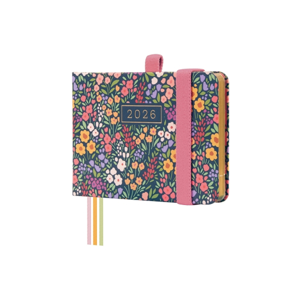 Finocam Minimal Design Agenda en Catalan - Anual 2026 - Tapa Dura - Cierre con Goma Elastica - Formato M0 - 108x16x77mm - Semana Vista en Vertical - Tematica de Flores.