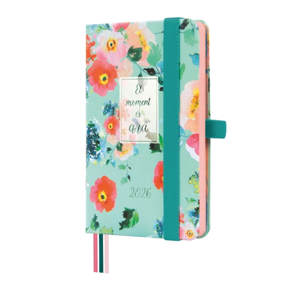 Finocam Minimal Design Agenda en Catalan - Anual 2026 - Tapa Dura - Cierre con Goma Elastica - Formato M2 - 86x15x132mm - Semana Vista Horizontal - Tematica de Flores.
