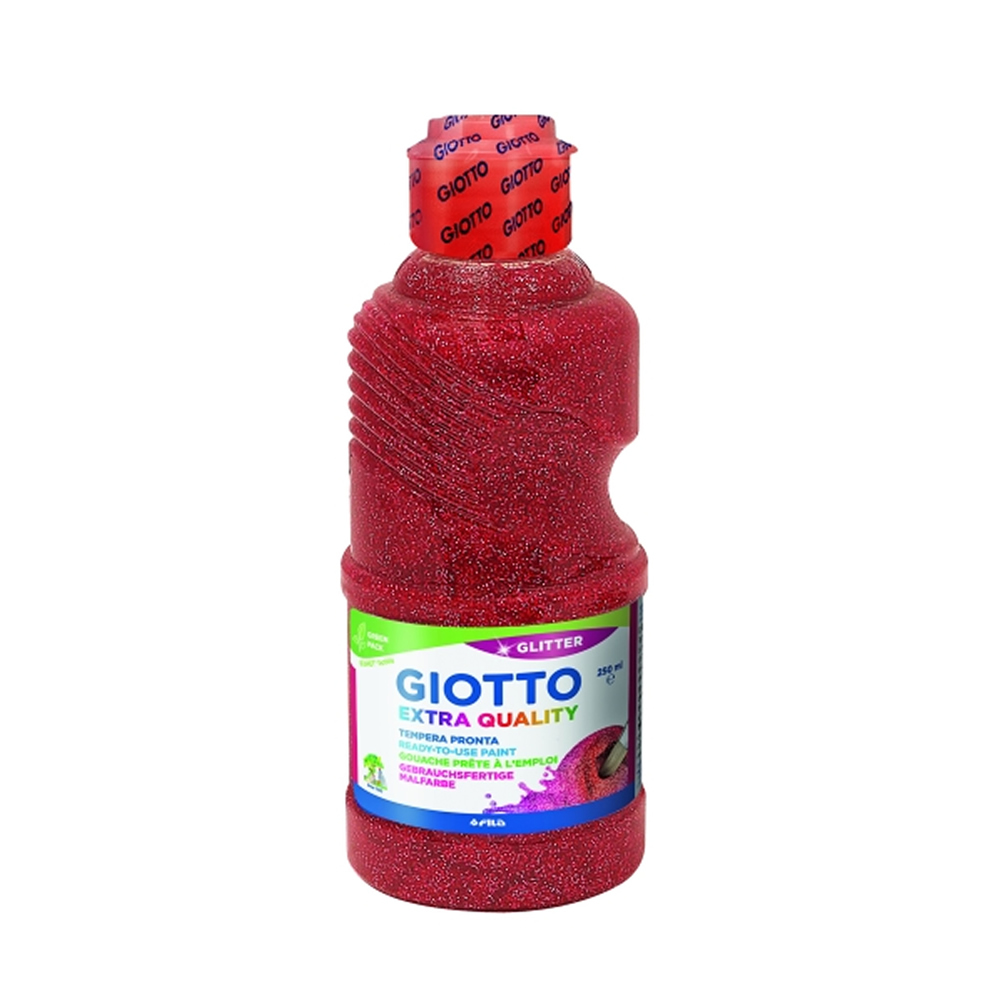 Giotto Extra Quality Glitter Tempera - 250ml - Lispa para el Uso - Botella Bio Pet - Color Rojo.