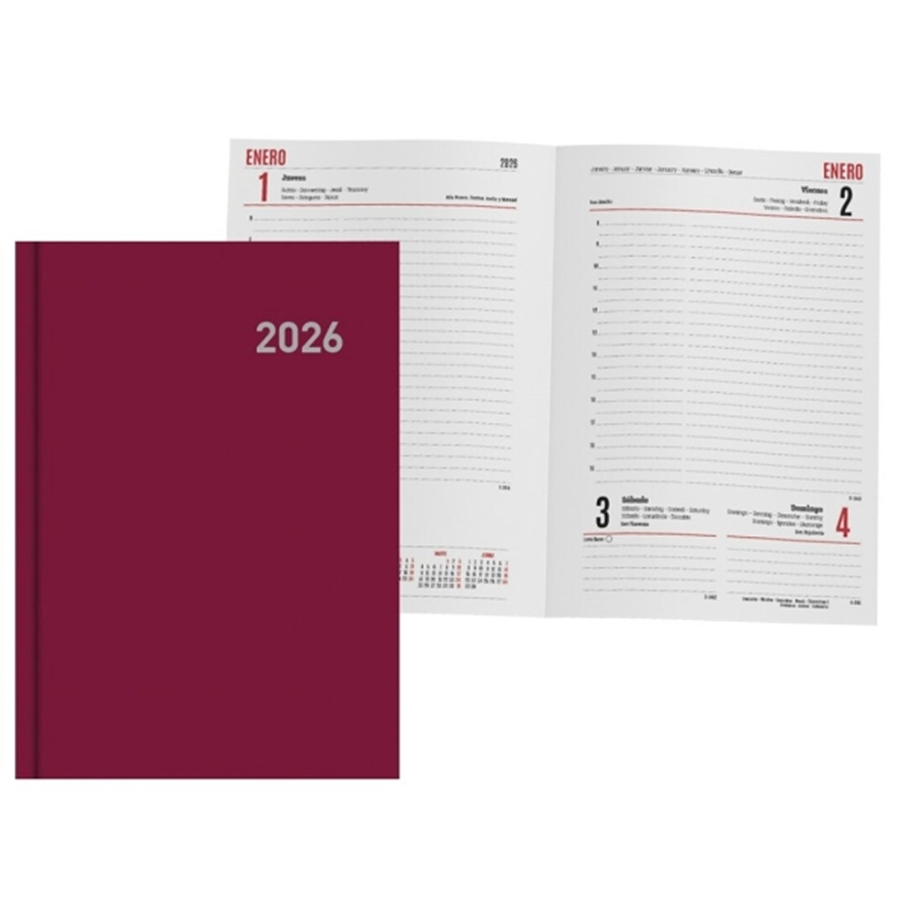 Ingraf Paris Agenda Anual - Dia Pagina - Viernes, Sabado y Domingo misma Pagina - Tamaño 15x21cm - Color Burdeos.