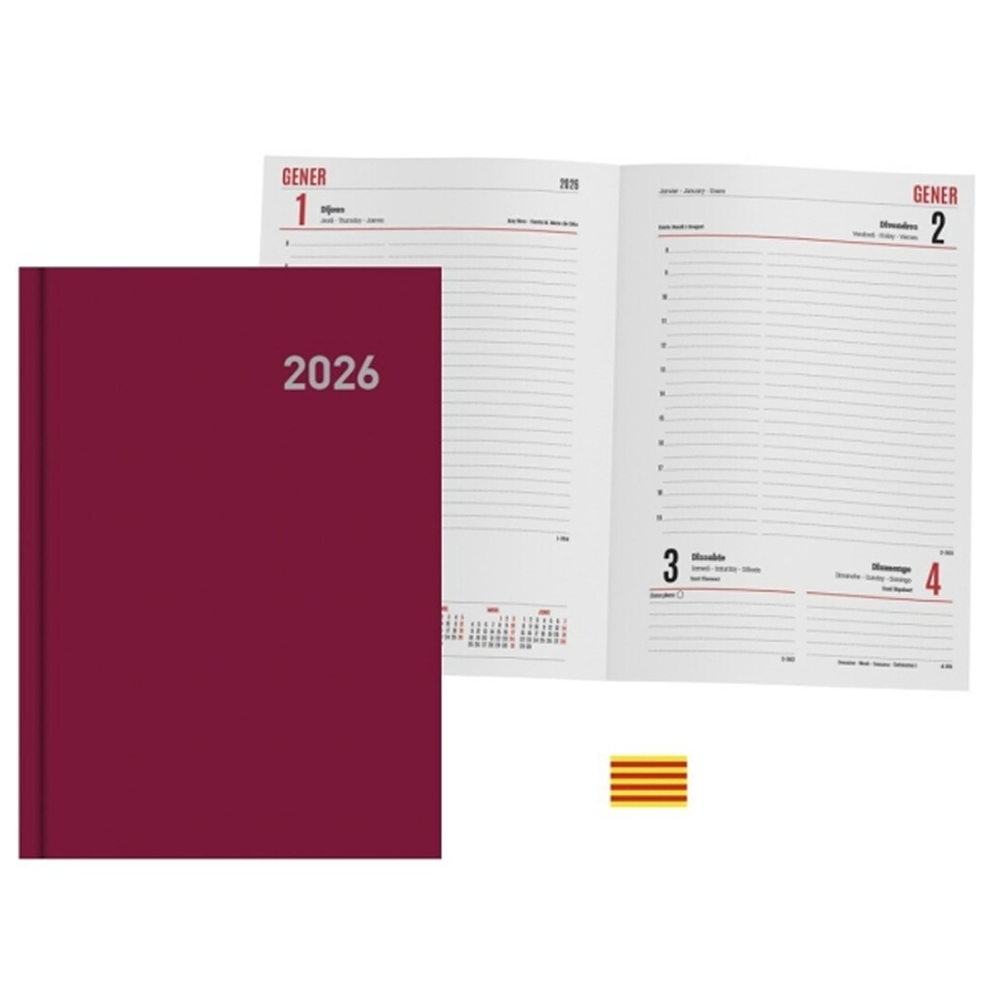 Ingraf Paris agenda anual en catalan. Cubierta rigida forrada. Interior con viernes, sábado y domingo en la misma página, impresa a dos colores en papel ecologico de 80 grs.