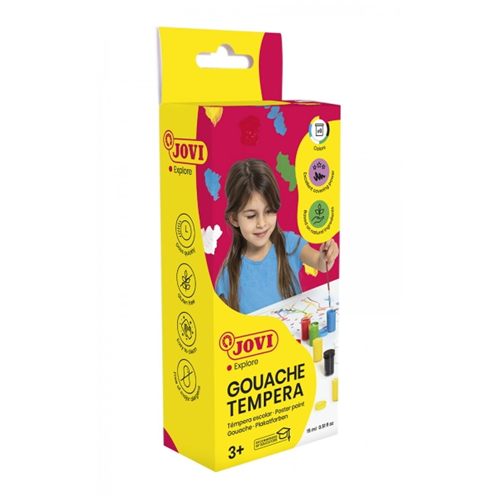 La témpera está disponible en una fantástica gama de divertidos colores que se pueden mezclar y que convertirán en una obra de arte cualquier superficie de papel, cartulina, madera, tela, pasta de modelar o fango. ¿Utensilios? Basta un pincel, un rodillo o una espátula para conseguir los resultados más espectaculares.