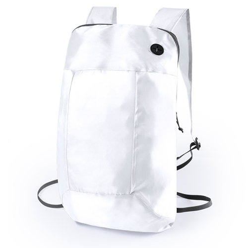 Mochila Plegable Signal color blanco. Composición: Poliéster 210D. Medidas: 22 x 40 x 16 cm. Peso articulo: 70 g/ m2. Codigo de impresión: F(1), N(8), R. Mochila plegable en suave poliéster 201D de alegres colores, con cierre de cremallera y salida de auriculares. Con esquinas reforzadas, cintas de hombro regulables y accesorios en color negro. Plegado de pequeño tamaño.