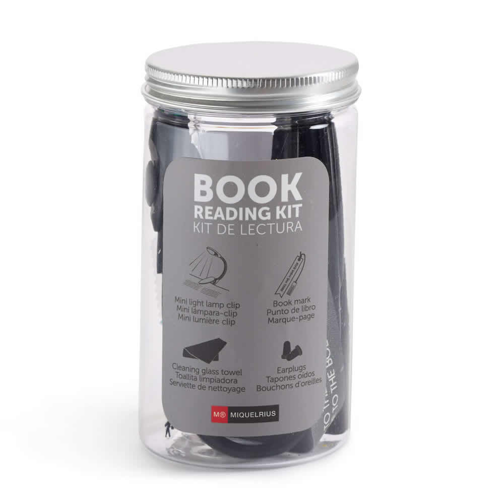 Práctico kit de lectura para llevar a todas partes que incluye: mini luz de lectura con pinza para colocar en libro o cuaderno, gamuza, tapones y punto de libro. Presentación: Cajita decorada con rosca.