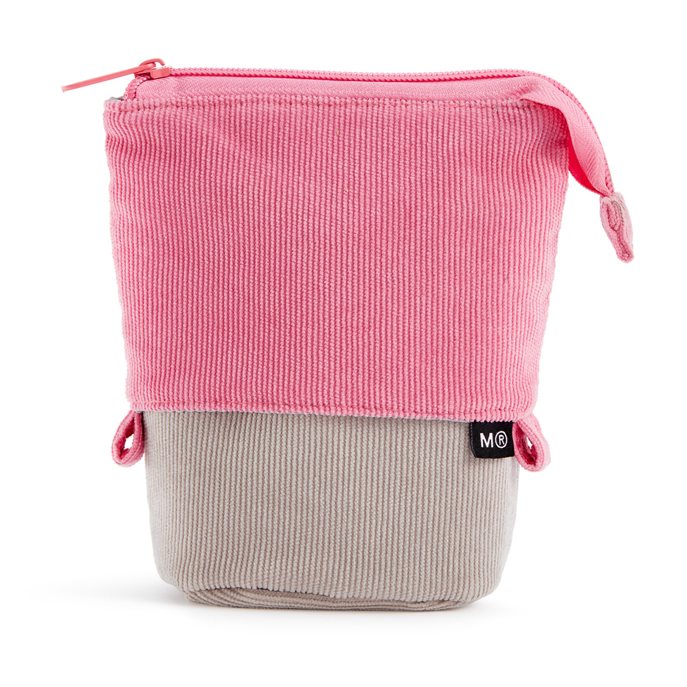 El estuche más versátil y cómodo. Cremallera en la parte superior que permite subir o bajar para convertirse en estuche o cubilete. Capacidad de hasta 30 piezas. Fabricado en símil pana, forro interior de poliéster y cierre cremallera.