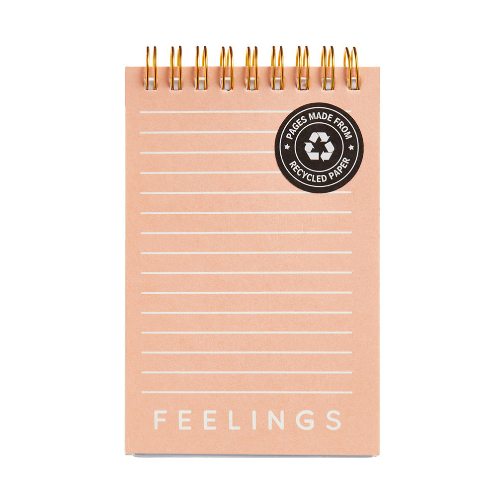 Bloc espiral Miquelrius. Cubiertas: Cartoncillo impreso. Espiral doble en color cobre. Guardas lisas blancas. Tamaño: 129 x 85 mm. Rayado: Horizontal. Hojas: 80 hojas. Papel: Reciclado de 70 g/m².