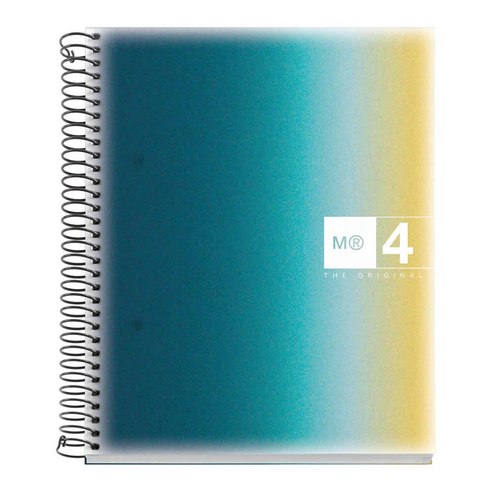 Libreta Espiral Miquelrius. TAMAÑO A5 148 x 210 mm. Cuadrícula 5x5 mm. 120 hojas de 4 colores. Polipropileno translúcido impreso de 0,8 mm. Papel extra opaco y microperforado. Taladros: 2