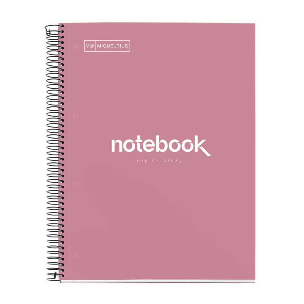 Cuaderno Emotions Miquelrius, tamaño A4 (210 x 297 mm). Cubiertas: Cartón forrado de papel impreso con plastificado brillante, compacto y resistente. Espiral: Metálica continua que permite la apertura en plano del cuaderno, además de dar la vuelta completa, y con cierre coilock que evita enganches. Papel interior: extra opaco de 90 g/m², evita que la tinta traspase y seca rápidamente. Hojas: 160 hojas con 8 bandas de color en el lateral (20 hojas por color), ideales para poder clasificar apuntes y usar un color para cada asignatura; cabecera para títulos; microperforado para un arranque limpio y 2 Taladros: para archivar. Rayado: Cuadrícula 5mm.