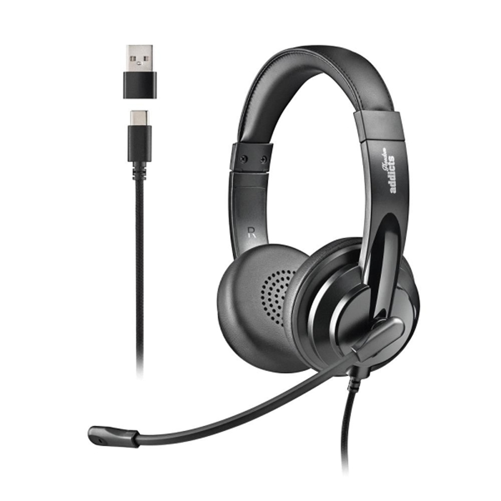 NGS VOX605-C Auriculares USB-C con Microfono - Microfono Regulable y Flexible - Almohadillas y Diadema Acolchadas - Diadema Ajustable - Control en Cable - Cable de 2m - Color Negro