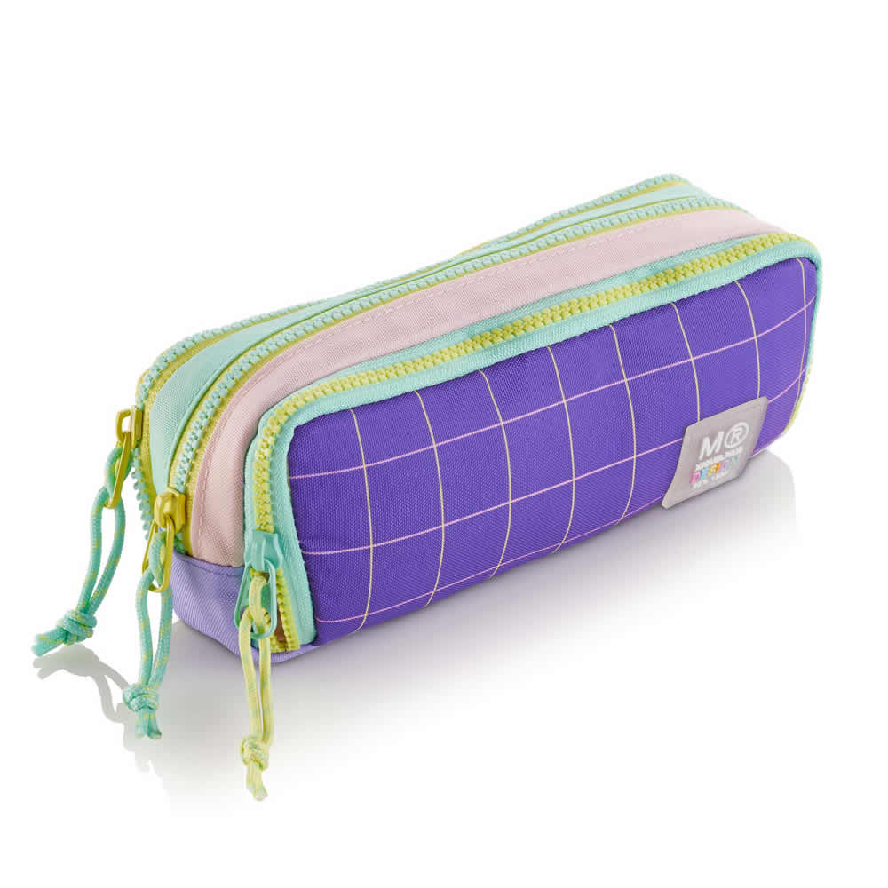 Estuche portatodo triple Miquelrius. Estuche con triple compartimento con cierre cremallera. Cremallera de plástico de alta calidad, muy resistente. Con tiradores metálicos con cinta para facilitar la apertura. Perfecto para organizar todos los objetos de material escolar. Material: RPET (poliéster reciclado a partir de botellas de plástico). Respetuoso con el medio ambiente.