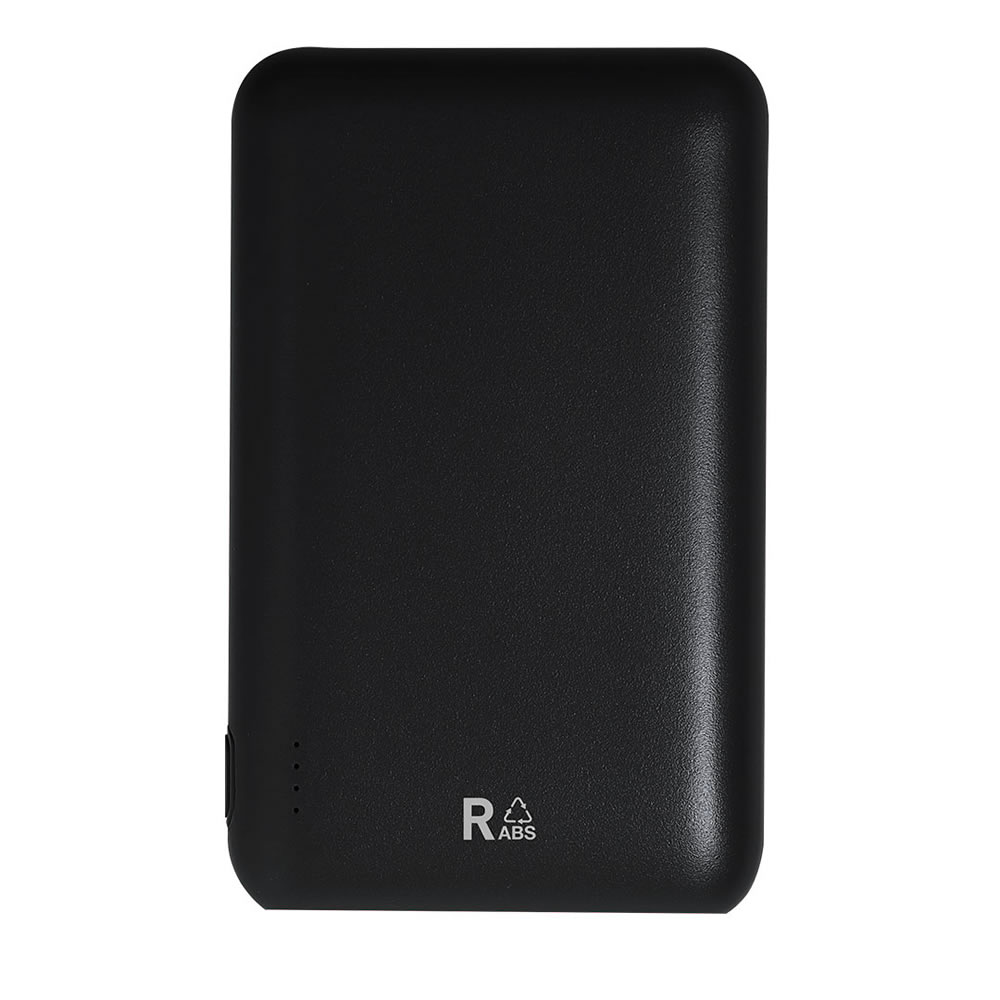 Batería auxiliar externa en ABS reciclado( RABS) de 5.000 mAh de capacidad de carga. Incluye salida USB dual para carga simultánea de 2 dispositivos, entrada Micro USB, y conexión Tipo C de entrada y salida. Con indicador de estado de carga. Incluye distintivo RABS.El RABS es un plástico altamente reciclable de gran resistencia y con multitud de aplicaciones que lo convierten en una solución eco-friendly. Las capacidades mostradas en todas nuestras baterías auxiliares externas son reales, incorporando todas ellas baterías de grado A y no recicladas, con una vida útil de al menos 500 ciclos de carga y según normativa CE.Además, están fabricadas conforme a los estándares RoHS y en cumplimiento con los siguientes requisitos de seguridad:Sistema de protección contra sobrecarga del power bank.Sistema de protección contra descarga completa que proporciona una mayor durabilidad del power bank.Sistema de bloqueo para evitar cortocircuitos.Sistema de transferencia de carga constante, acorde con la capacidad del dispositivo de destino.5000 mAh. 2 Salidas USB. Entrada Micro USB. Salida y Entrada Tipo C 5000 mAh. 2 Salidas USB. Entrada Micro USB. Salida y Entrada Tipo C.