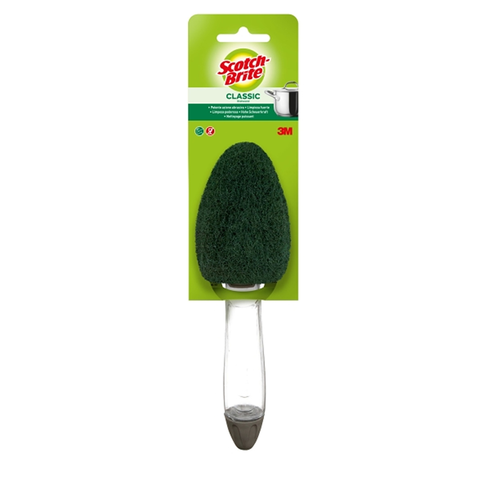 Si buscas una limpieza potente y eficaz, utiliza el estropajo con mango con dispensador de líquido para tareas difíciles Scotch-Brite?. Desincrusta con facilidad la grasa y los alimentos quemados de sartenes, protegiendo sus manos Las fibras del estropajo están fabricadas con material 100 % reciclado. El estropajo con mango con dispensador de líquido para tareas difíciles Scotch-Brite? puede rayar superficies delicadas, por lo que no debe usarse en electrodomésticos, vidrio u otras superficies frágiles. Para estos casos, recomendamos cambiar el recambio a la versión delicada de Scotch-Brite? Aprovecha nuestros más de 60 años de experiencia en el desarrollo de productos de limpieza con Scotch-Brite®.