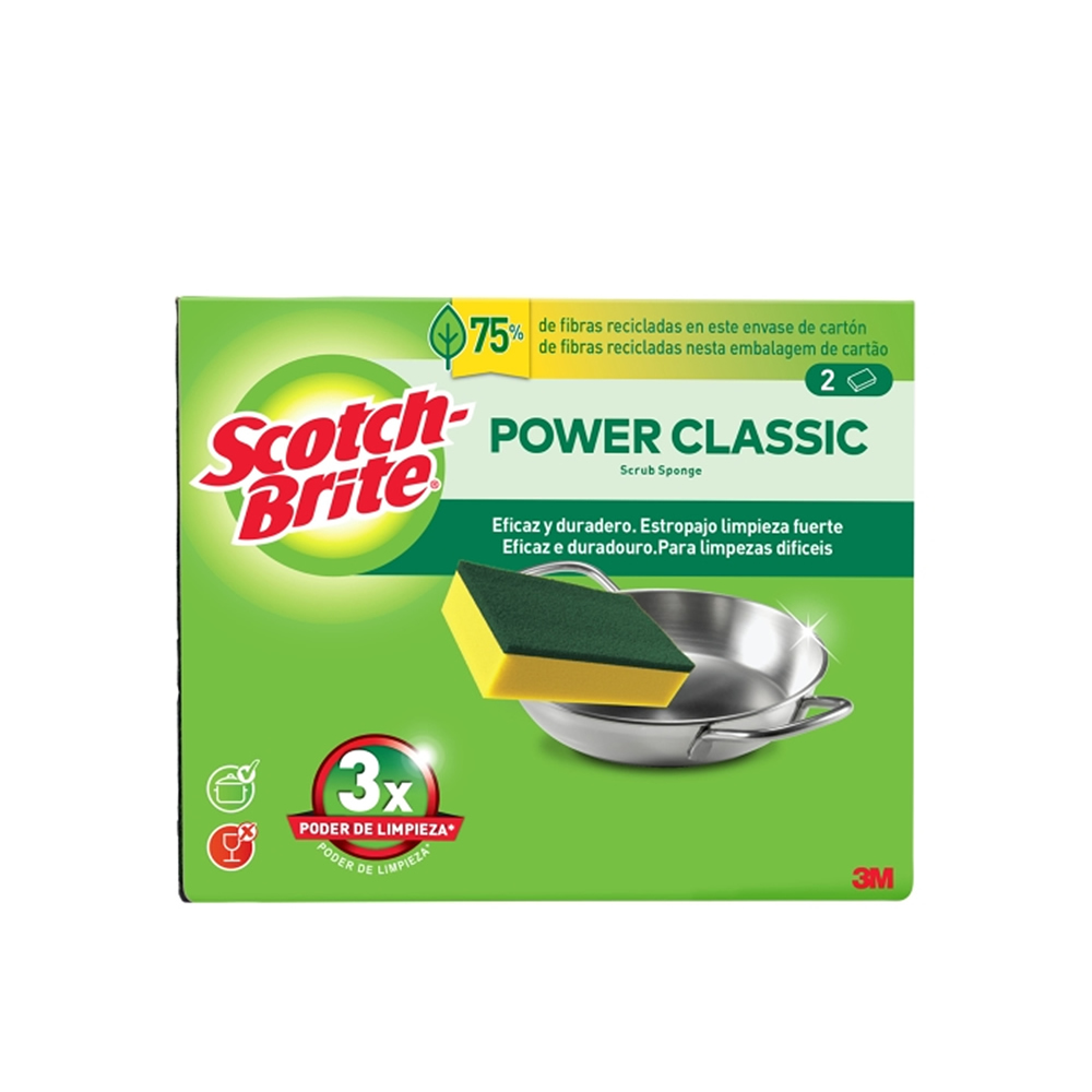 El Estropajo Clásico Scotch-Brite® es un estropajo resistente y eficiente, especialmente diseñado para eliminar grasa, restos de comida quemada y otras manchas difíciles del hogar. Su fibra abrasiva proporciona una limpieza profunda que facilita el trabajo en ollas, sartenes y superficies con suciedad incrustada.
