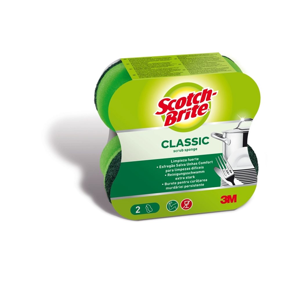 El estropajo clásico salvaúñas Scotch-Brite® es un estropajo duradero y eficaz, diseñado para desincrustar la grasa, los restos de comida quemados y otras manchas domésticas. Su diseño ergonómico tiene lados curvados para proteger las uñas durante la limpieza.