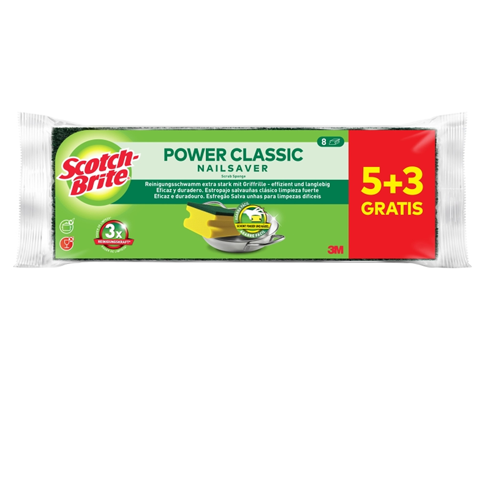 El estropajo clásico salvaúñas Scotch-Brite® es un estropajo duradero y eficaz, diseñado para desincrustar la grasa, los restos de comida quemados y otras manchas domésticas. Su diseño ergonómico tiene lados curvados para proteger las uñas durante la limpieza.