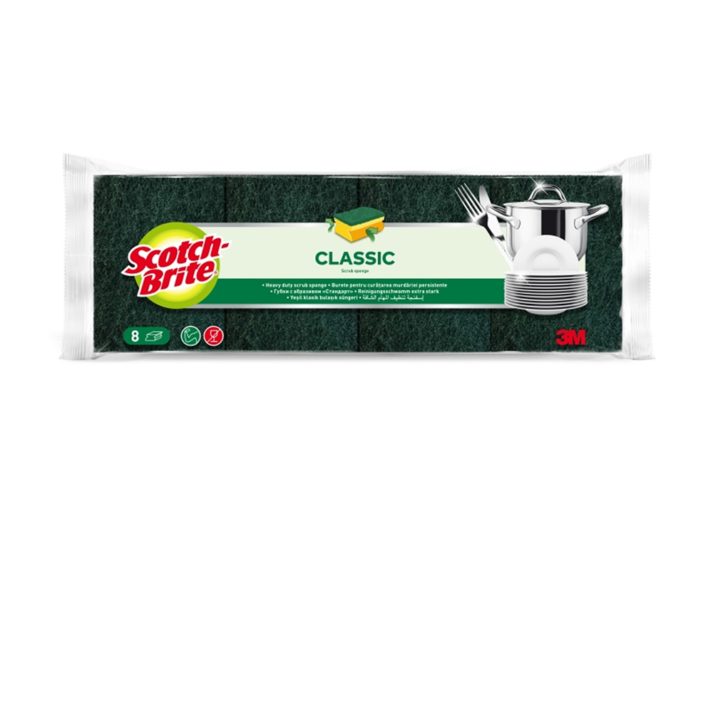 El estropajo clásico salvaúñas Scotch-Brite® es un estropajo duradero y eficaz, diseñado para desincrustar la grasa, los restos de comida quemados y otras manchas domésticas. Su diseño ergonómico tiene lados curvados para proteger las uñas durante la limpieza.