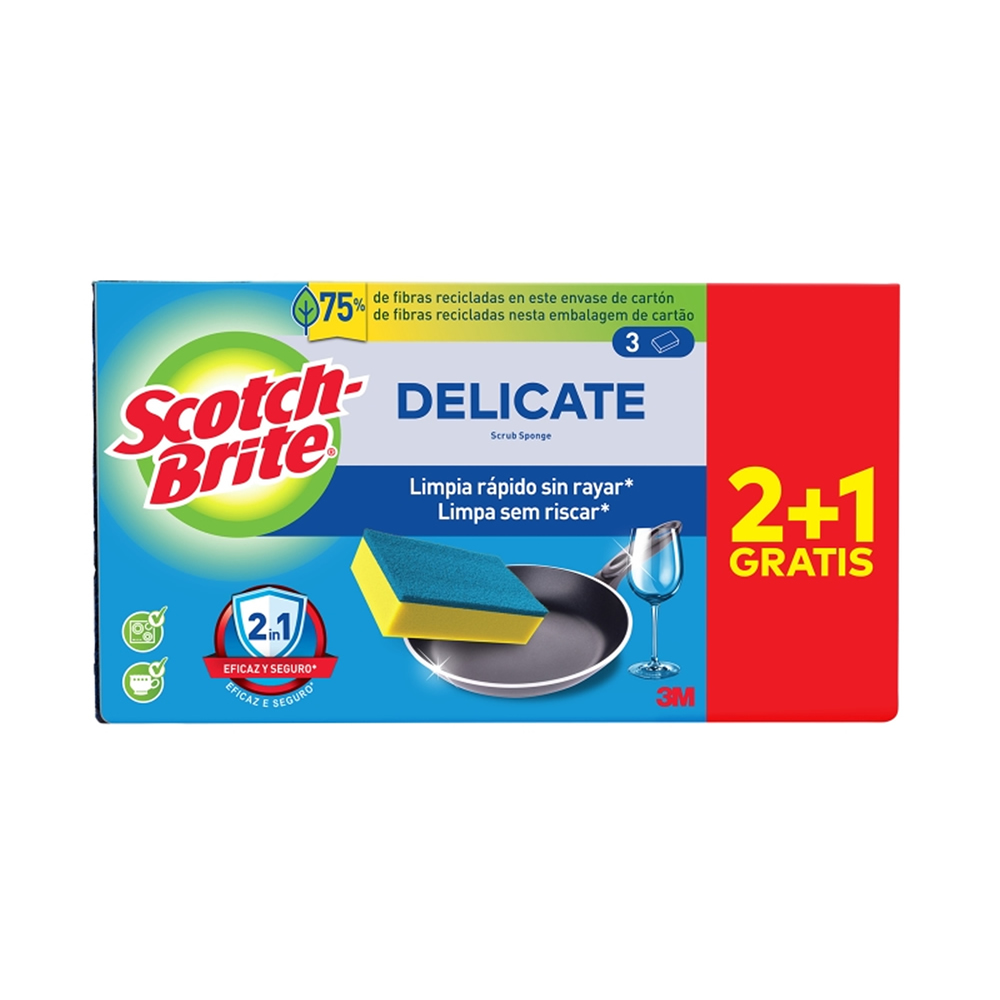 Para una esponja para fregar multiusos sin rayar que resulta ideal para un uso cotidiano y eficiente, consigue la esponja para fregar sin rayar delicada Scotch-Brite®. Es excelente para la limpieza de ollas y sartenes, incluidos utensilios de cocina antiadherentes y vidrio, sin causar arañazos antiestéticos ni dañinos. Aprovecha nuestros más de 60 años de experiencia en el desarrollo de productos de limpieza con Scotch-Brite®.
