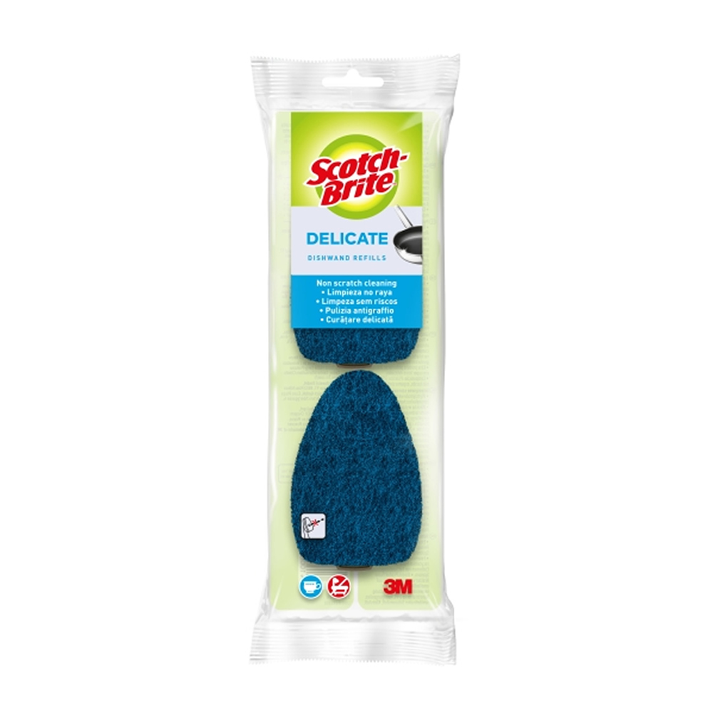 Para obtener una limpieza eficaz y que no raye, utiliza el recambio Delicado de estropajo con mango Scotch-Brite?. Ideal para utensilios de cocina antiadherentes y superficies frágiles como el cristal. Las fibras del estropajo están fabricadas con material 100 % reciclado. No empujes hacia fuera el tapón del líquido del recambio Aprovecha nuestros más de 60 años de experiencia en el desarrollo de productos de limpieza con Scotch-Brite®.
